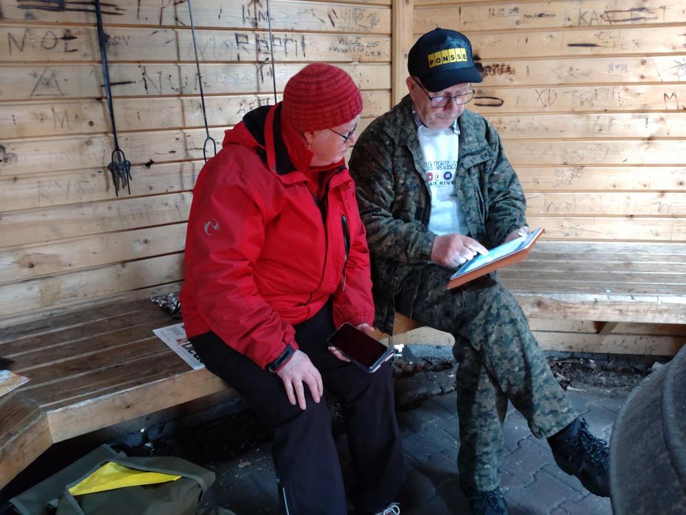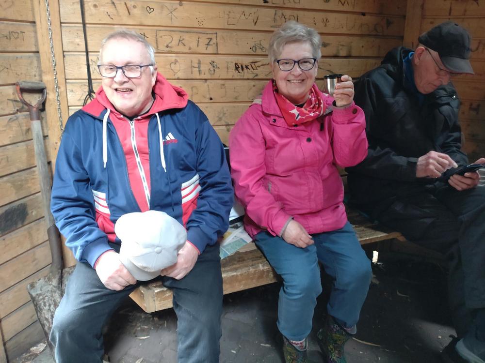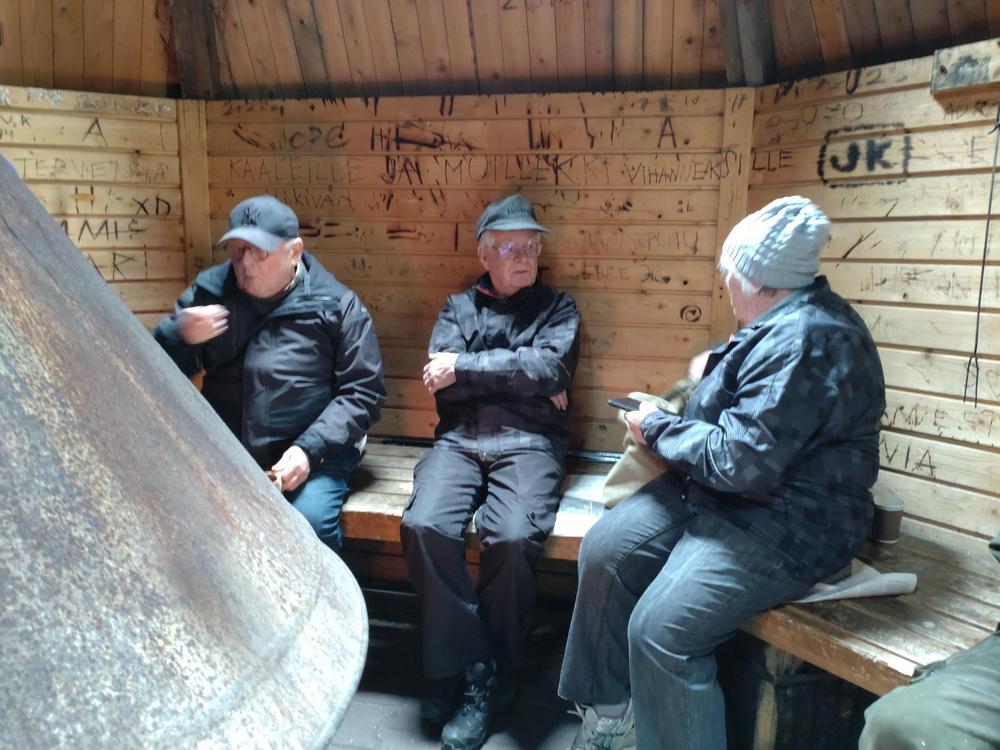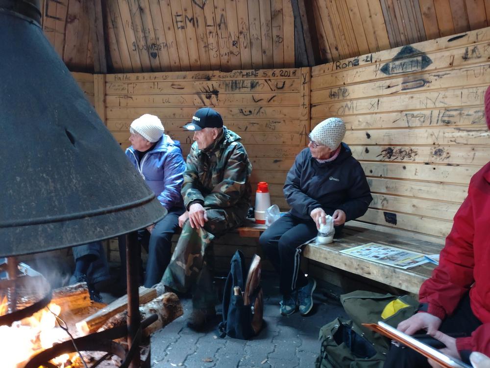 Ensimmäinen kevään Luontokerho kokoontui Niinistönjärvellä ti 17.5. Sää oli kolea ja tuulinen. 16 henkeä uskaltautui paikalle. Kodassa oli lämmintä. Makkara maistui pienen kävelyreissun jälkeen.Kodassa kuului iloinen nauru ja puheensorina. Markku tuuhasti puiden kans.