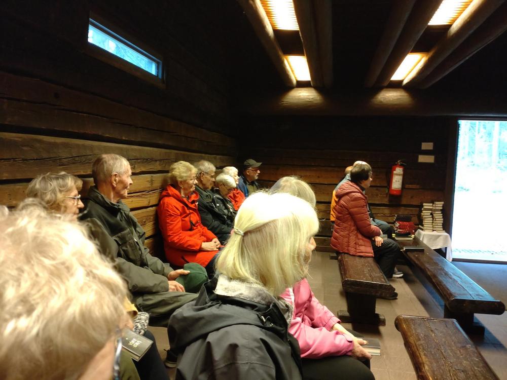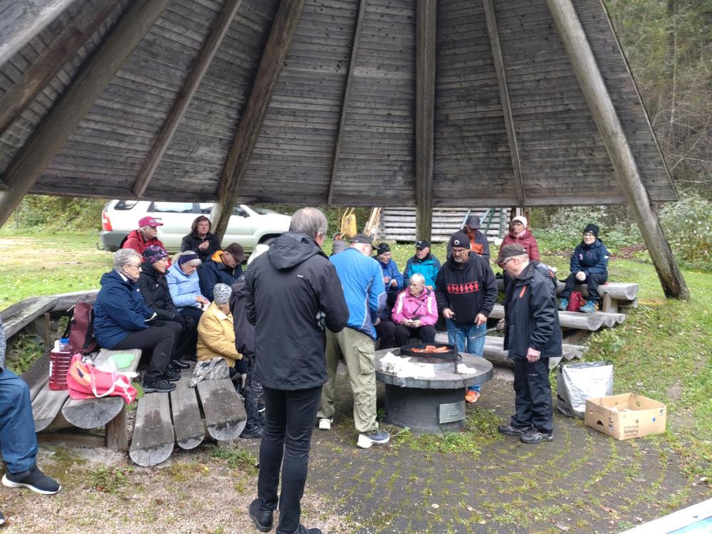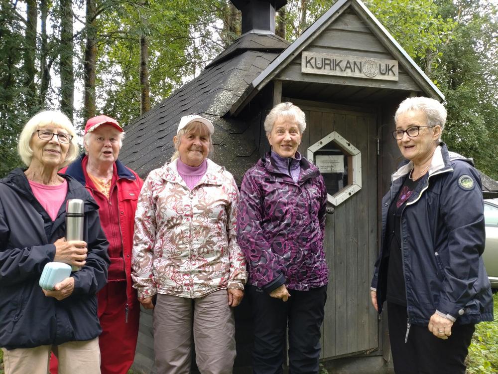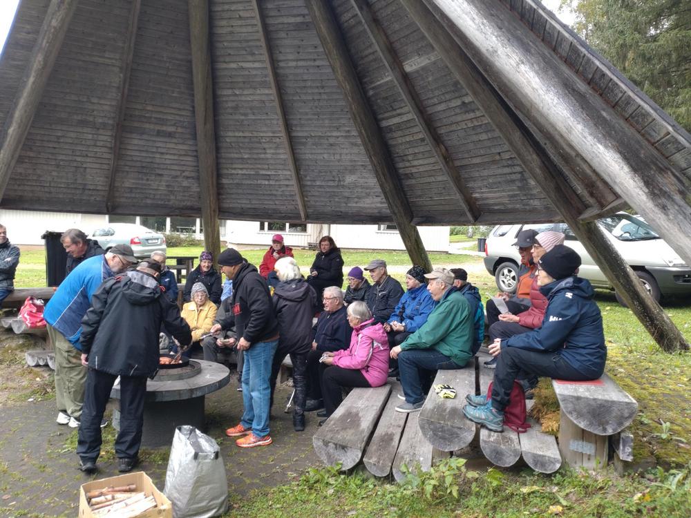 Kesän viimeinen Luontokerho kokoontui Saukkorannassa. Osallistujia oli 25 jäsentä sekä Pirjo ja Heikki Sariola. Kerhon aluksi kokoonnuimme Riihikirkkoon hartaushetkeen, jonka jälkeen oli vuorossa yhdistyksen tarjoama makkara ja mehutarjoilu. Sää oli sateinen ja viileä, syksy on tulossa.