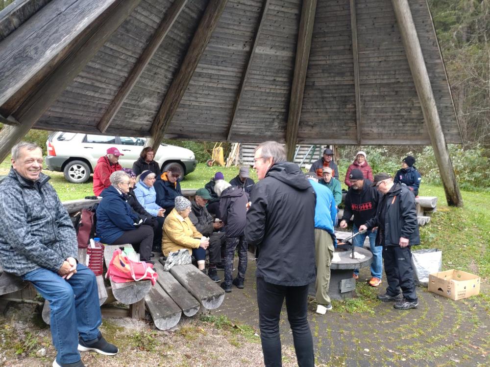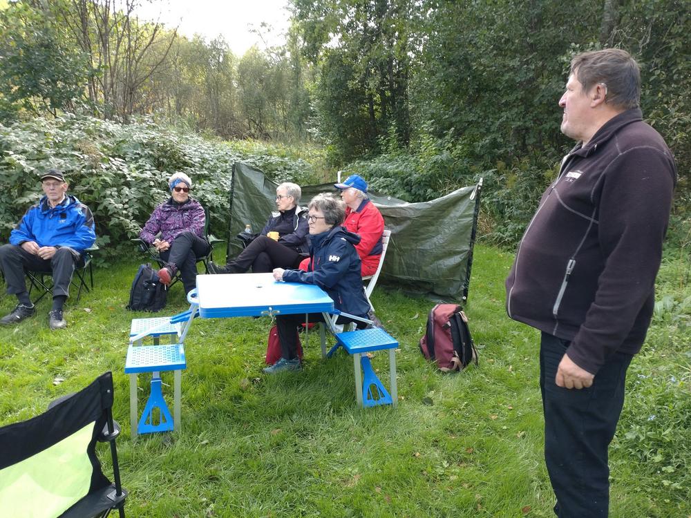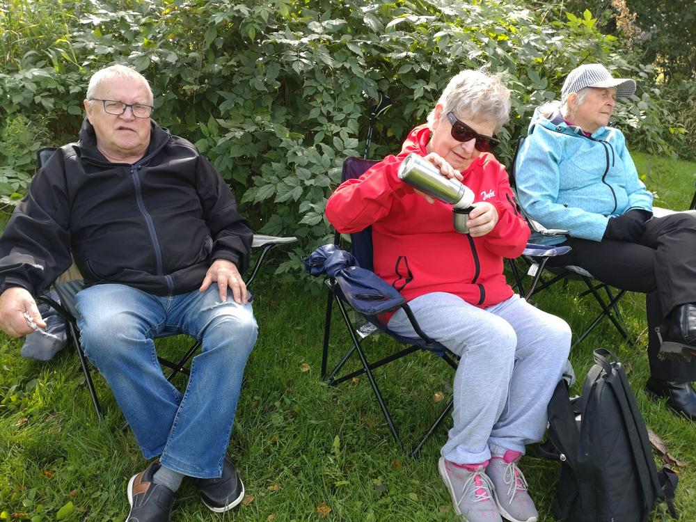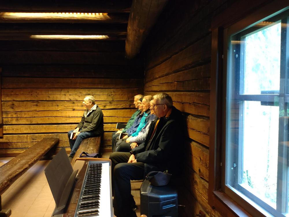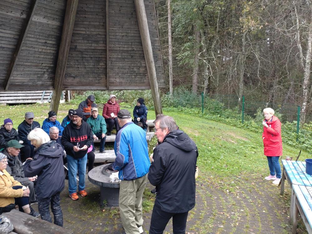Kesän viimeinen Luontokerho kokoontui Saukkorannassa. Osallistujia oli 25 jäsentä sekä Pirjo ja Heikki Sariola. Kerhon aluksi kokoonnuimme Riihikirkkoon hartaushetkeen, jonka jälkeen oli vuorossa yhdistyksen tarjoama makkara ja mehutarjoilu. Sää oli sateinen ja viileä, syksy on tulossa.