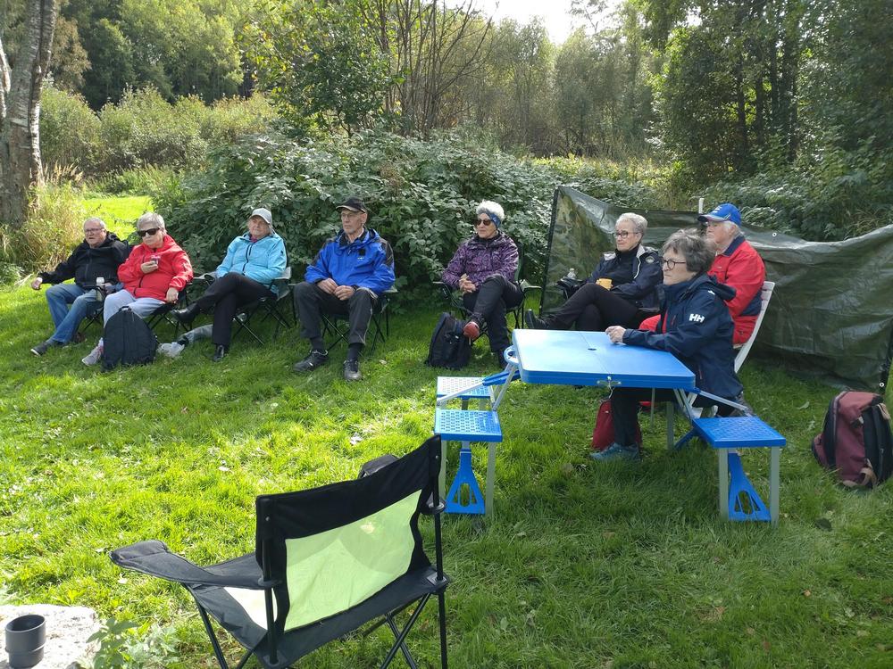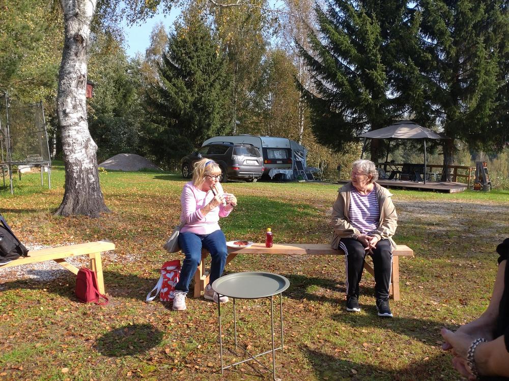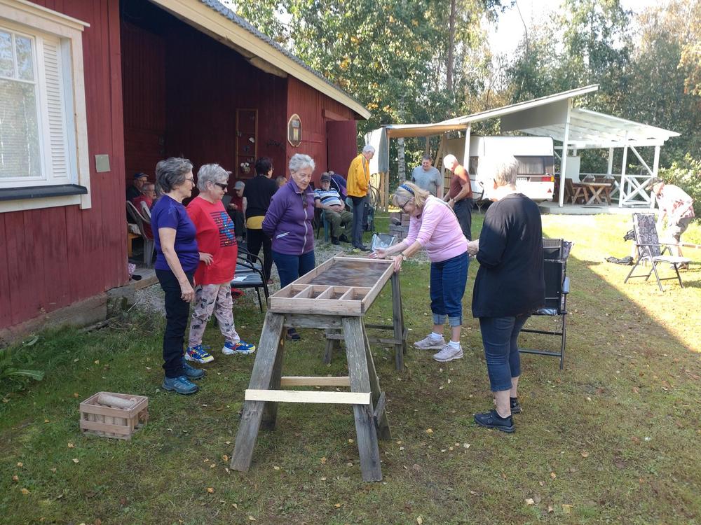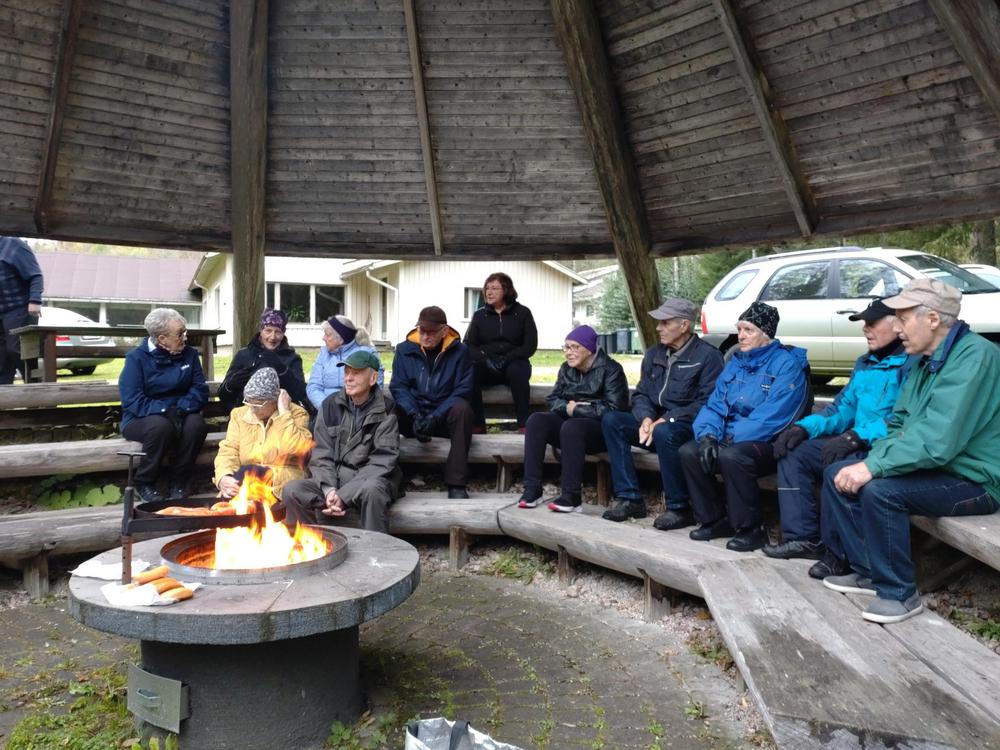 Luontokerho kokoontui ma 9.9. Jokihaaraan Helenan ja Ailan kesäpaikkaan. Sää oli hieno. Auriko paistoi ja tuuli vilvoitti sopivasti. Mukana makkaranpaistossa oli 22 jäsentä. Makkaran syönnin jälkeen pelattiin noppapeliä ja mölkkyä.