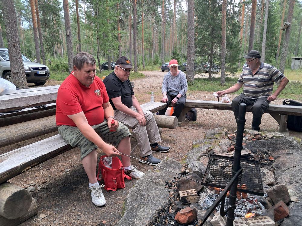 Kurikan Metsästysseuran majalla kokoonnuttiin 3.6. Sää oli aurinkoinen ja sopivan lämmin. Paistettiin makkaraa ja heitettiin bocciapalloja. Mukana 12 jäsentä.