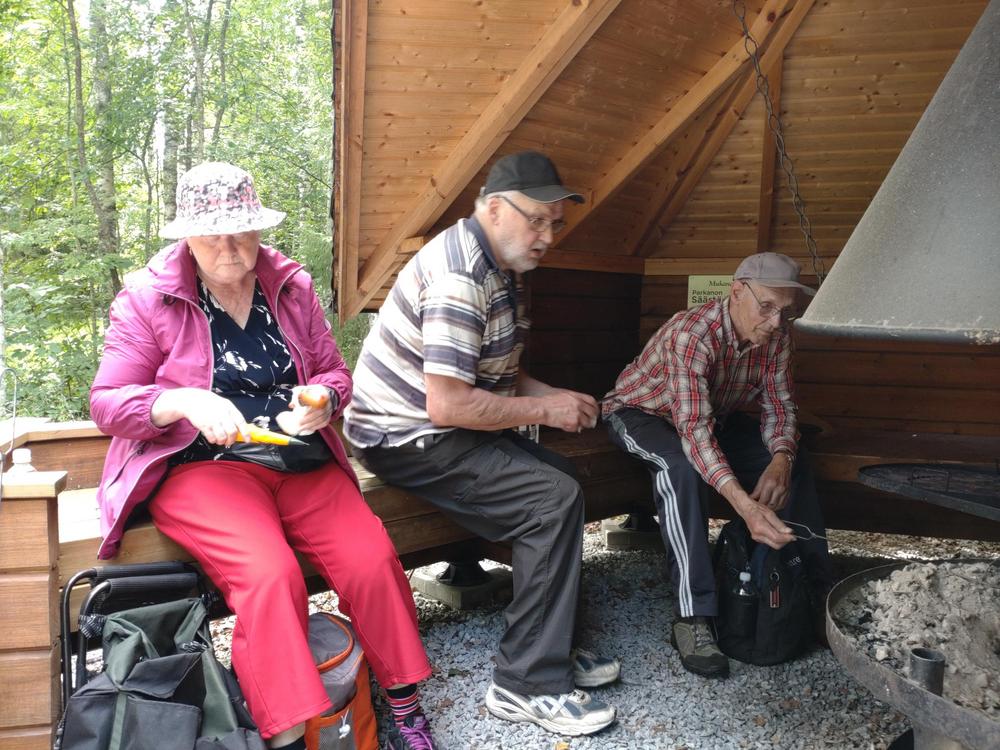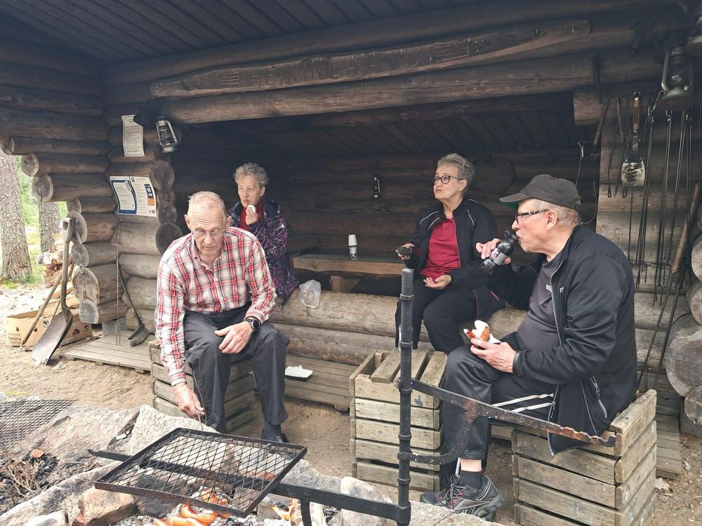 Luontokerho kokoontui Mietaan laavulla Hakunintiellä ma 17.6. Kaunis sää houkutteli 17 jäsentä paikalle. Ohjelmassa oli makkaran paistoa, visailua ja maailman parantamista.