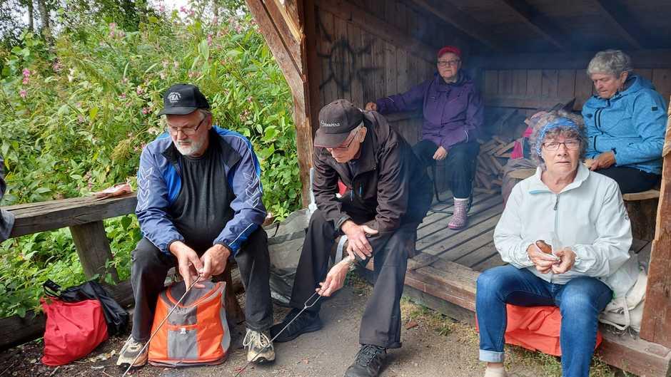 Sopivasti piskojen välissä Luontokerho kokoontui Kalakerhon kodalla Kyrönjoen rannassa ma 9.8. Makkara maistui ja kuulumisia vaihdettiin.