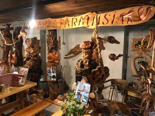 Tulomatkalla poikkesimme Pahkaparatiisissa. Mauno Suonpää on koonnut ainut laatuisen näyttelyn oman pihapiirin ympäristöön. Vastaavaa näyttelyä ei toista löydy Suomesta.