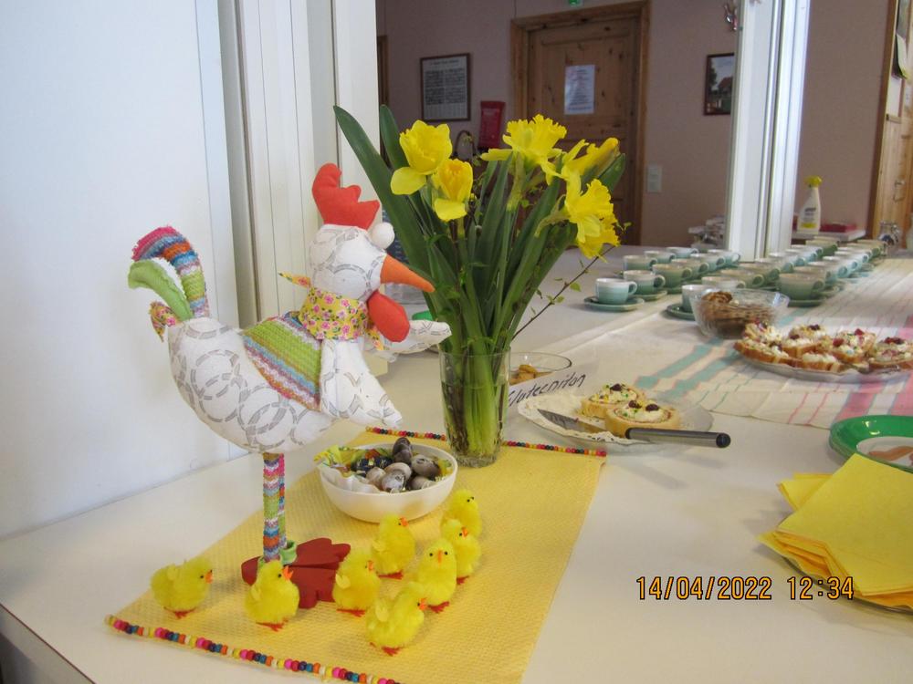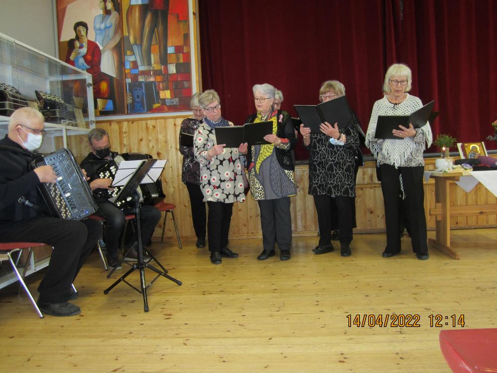 Kiirastorstaina vietimme Pääsiäishartauden. Seurakunnasta mukana oli diakoniatyöntekijä Hanna Silvola. Musiikkikerho lauloi Heikki Rannan ja Aulis Alangon säestyksellä. Hilkka Joensuu lausui runon. Juhlan järjestäjänä ja vetäjänä toimi Helena Kuusisto. Juhlan jälkeen joimme kahvit. Jäseniä oli paikalla runsaasti.