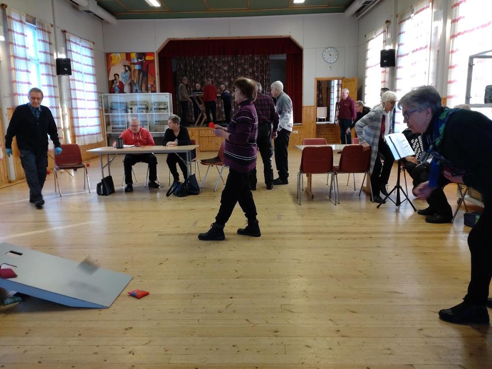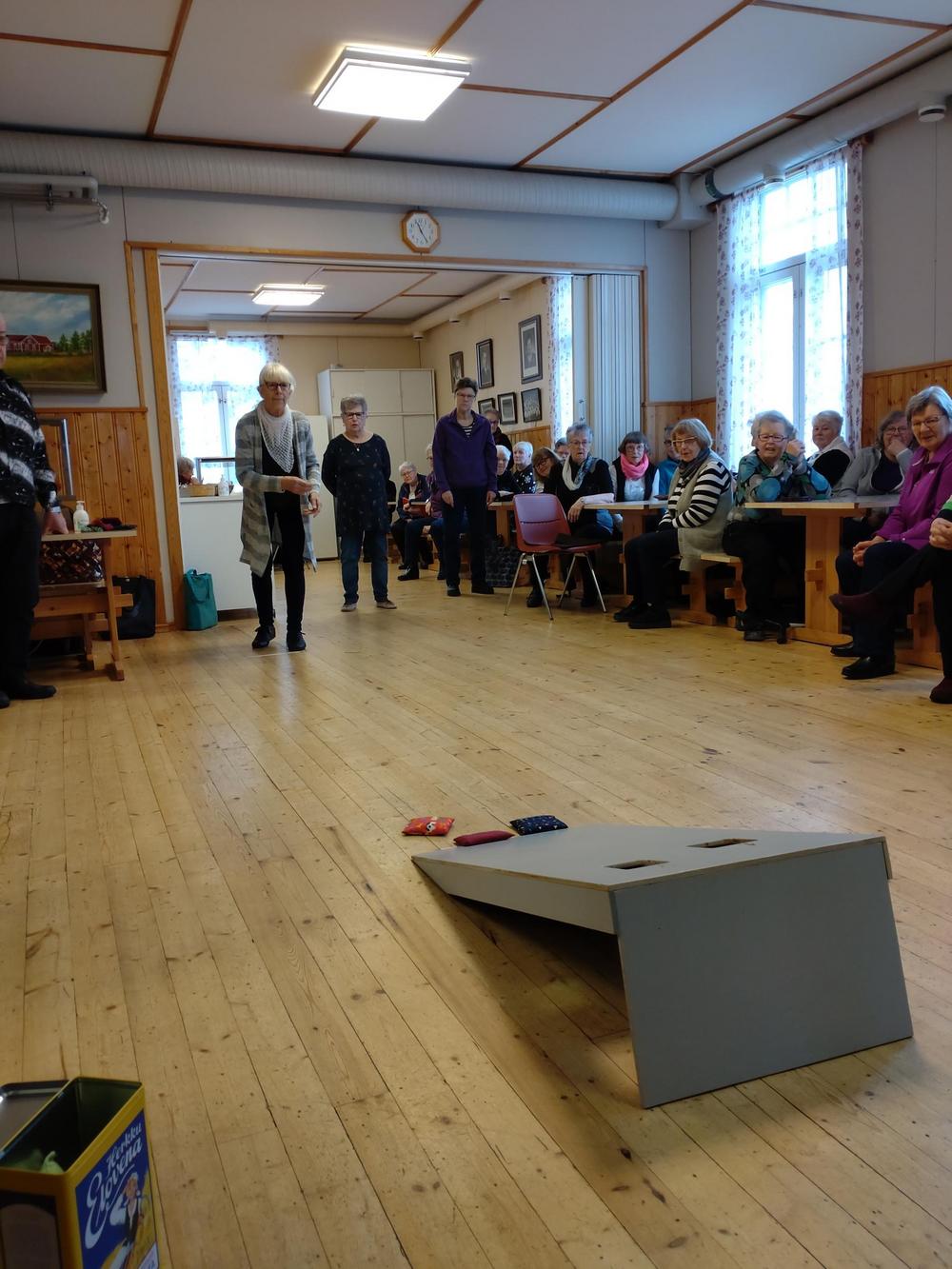 Vuosi 2023 aloitettiin 12.1. arvonnalla. Pöytä oli jälleen täynnä palkintoja arpojen ostajille. Heitettiin tikkaa, pelattiin sisäbocciaa ja koronaa. Kuusiston Helena oli ommellut uudet hernepussit entisten syötyjen tilalle.
