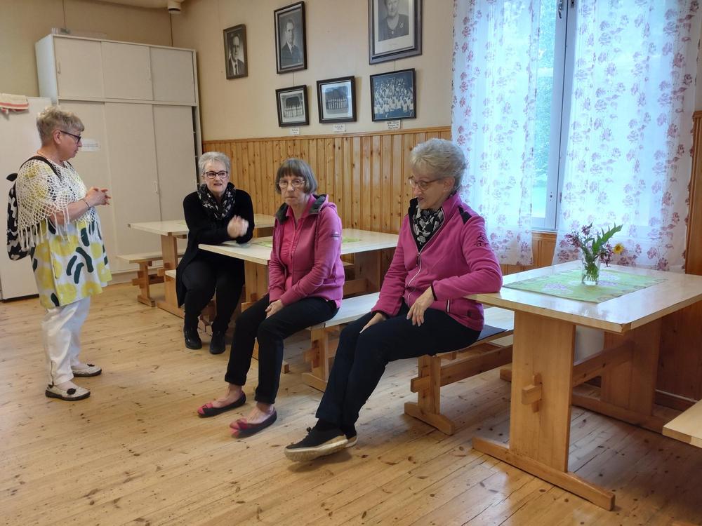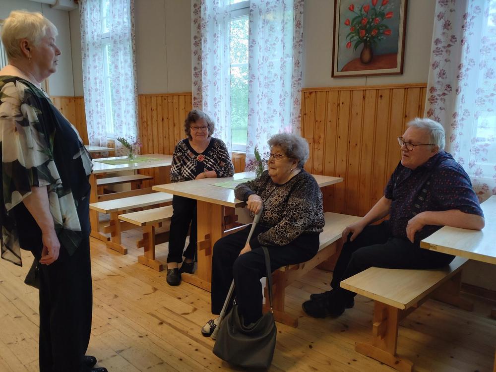Kevään viimeistä kerhoa vietettiin to 8.6. kesäjuhlan merkeissä. Ohjemassa oli pakinoita, soittoa ja yhteislaulua. Markku piti visailua ja Hilkka kertoi lääketieteen opinnoistaan. Opinnot olivat edistyneet niin, että tällä kerralla hän kertoi ihmisestä ulkopuolelta. Jatkossa keskitytään enempi ihmisen sisälle. Järvimäen Inga esitti kolme pantomiini esitystä. Esitysten lopussa yleisö sai arvata mistä esityksessä oli kyse. Arvaukset osuivat kohdalleen tai sitten eivät. Juhlan lopuksi joimme leivoskahvit.