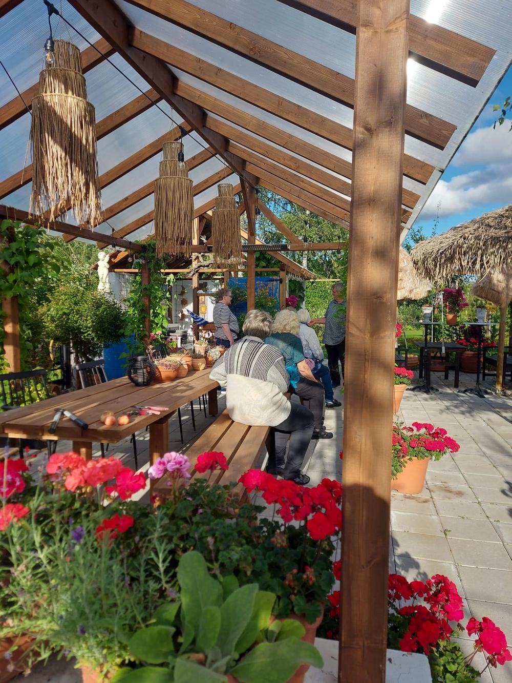 14.8. tutustuimme naisporukalla Arosen puutarhaan Lohiluomalla. Mukana oli 15 jäsentä.