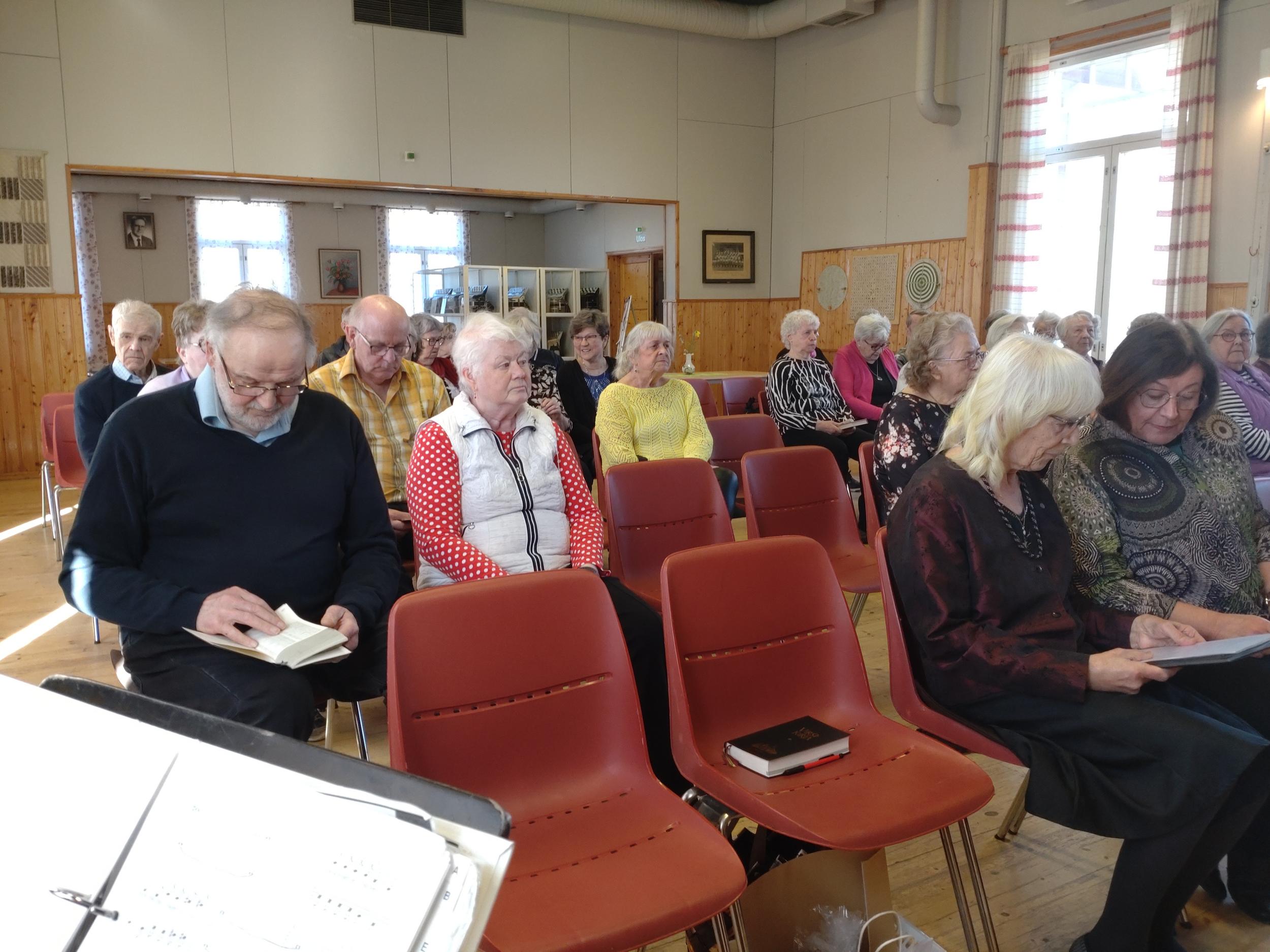 Kiirastorstaina 17.4. hiljennyimme Pääsiäishartauteen. Ohjelmassa oli Pääsiäiseen liittyviä virsiä, runonlausuntaa ja kuorolaulua. Tilaisuuteen osallistuivat myös Pirjo ja Heikki Sariola omalla ohjelmallaan. Pirjon puhe käsitteli Pääsiäisen tapahtumia ja Heikki huilumusiikilla. Tilaisuuden juonnosta vastasi Helena.