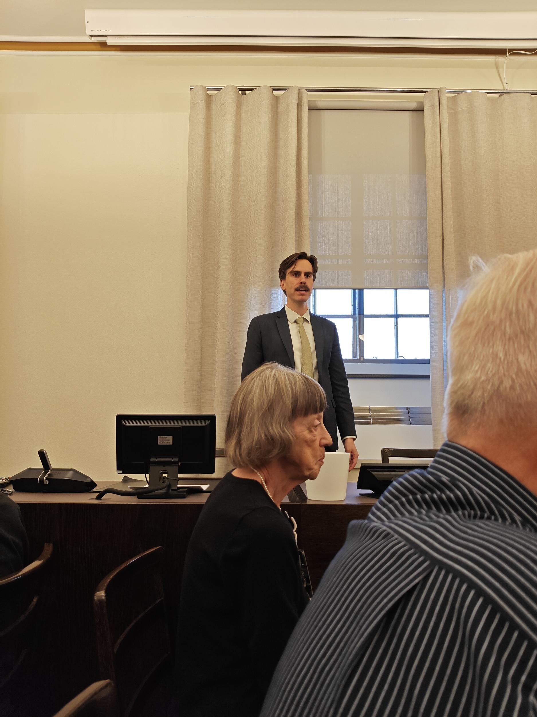 Sisälle Eduskuntaan meidät otettiin klo 14.45. Turvatarkastuksen jälkeen matkalaiset jaettiin kolmeen opastusryhmään. Saimme nähdä ja kuulla eduskuntatalon rakennushistoriasta pienoismalleina sekä talon ympärille ajansaatossa rakennettujen lisärakennusten käytöstä. Ennen kello 16.00 täysistuntosalissa alkavaa kyselytuntia, ryhmiä kierrätettiin marmorisia portaikkoja pitkin pääaulasta valtiosaliin. Pääaulassa on jokaiselle kansanedustajalle lokero, jossa voi säilyttää tavaroitaan työssäolo ajan. Lokerossa oleva postilaatikko jää nykyään käyttämättä. Posti kulkee sähköisesti. Valtiosalissa saimme kulkea entisten Suomen presidenttien kivisten katseiden seuraamina. Valtiosalin toisessa päässä sijaitsee se jokaisen tuntema eduskunnan hissi, hypätäkkö vai ei! Opas saatteli meidät täysistuntosaliin kuulemaan päivän kyselytuntia, jonka jälkeen tapasimme vielä kansanedustaja Matias Mäkysen SDP:n ryhmätilassa. Hän kertoi eduskuntaa puhuttavista ajankohtaisista teemoista. Lopuksi käytiin vielä keskustelua eläkeläisiä koskevista asioista.